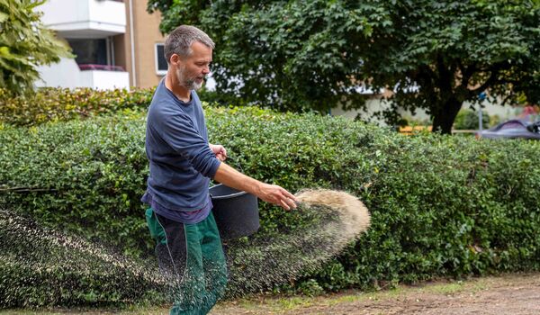 Mitte September 2025 legten wir zusammen mit einigen Engagierten eine naturnahe Blumenwiese und Staudenpflanzung in der Thermometersiedlung an. Zur Pressemitteilung.