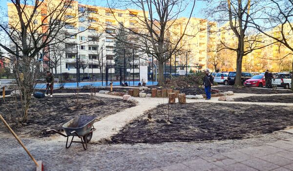 Ende Dezember stellten wir ein Trittsteinbiotop in der Thermometersiedlung fertig. Umgesetzt wurde die Fläche als Praxisbaustelle gemeinsam mit Azubis des Ausbildungszentrums OTA gGmbH. Die Fläche ist im Bestand der HOWOGE und umfasst etwa 30 m² Trittsteinbiotop, ergänzt durch rund 300 m² Blumenwiese. Die Bauzeit erstreckte sich von November bis Dezember 2025.