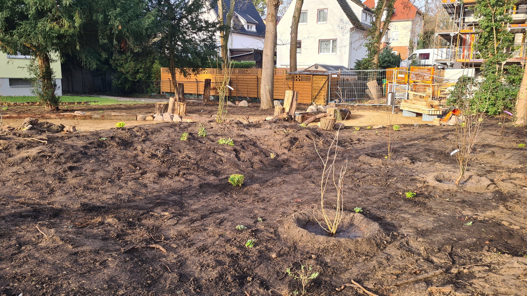 Bei Pflanzaktionen brachten wir gemeinsam mit den Anwohnerinnen und Anwohnern Stauden und Frühjahrsblüher in den Boden. Das förderte die Identifikation der Menschen mit ihrem neuen Park. Gleiches gilt für das angeleitete Bauen von Wildbienen-Nisthilfen.
