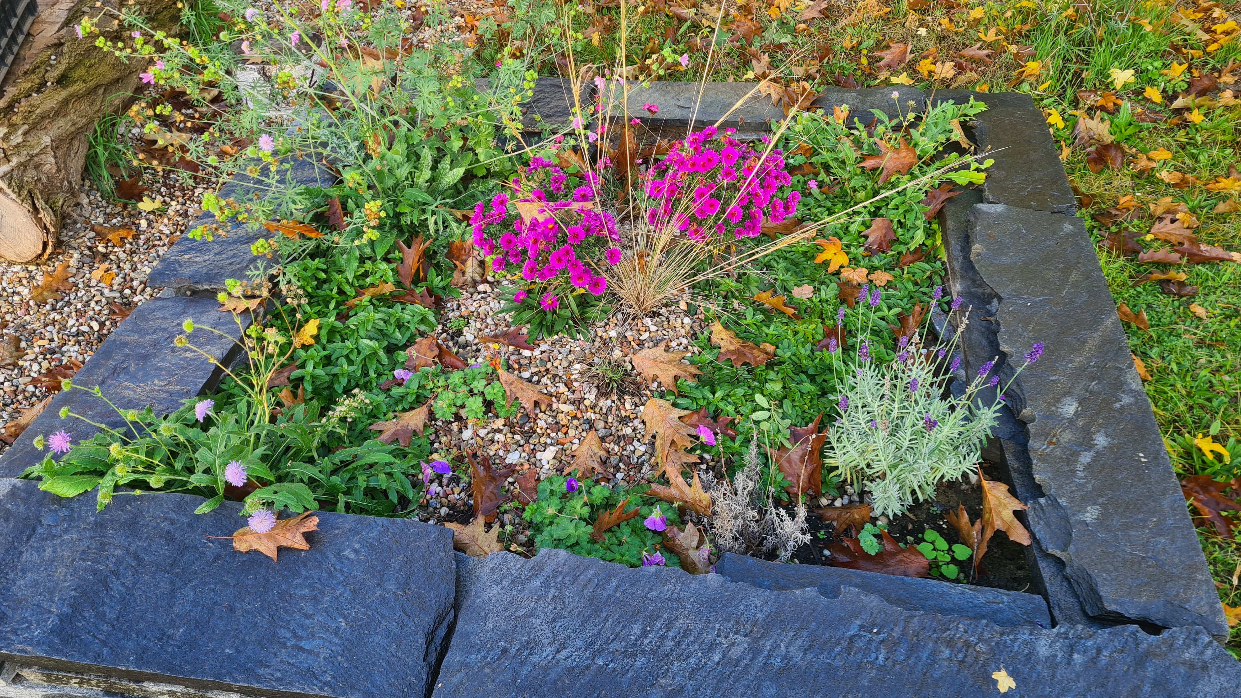 sonniger Standort, geschwungene Umrandung mit Steigung